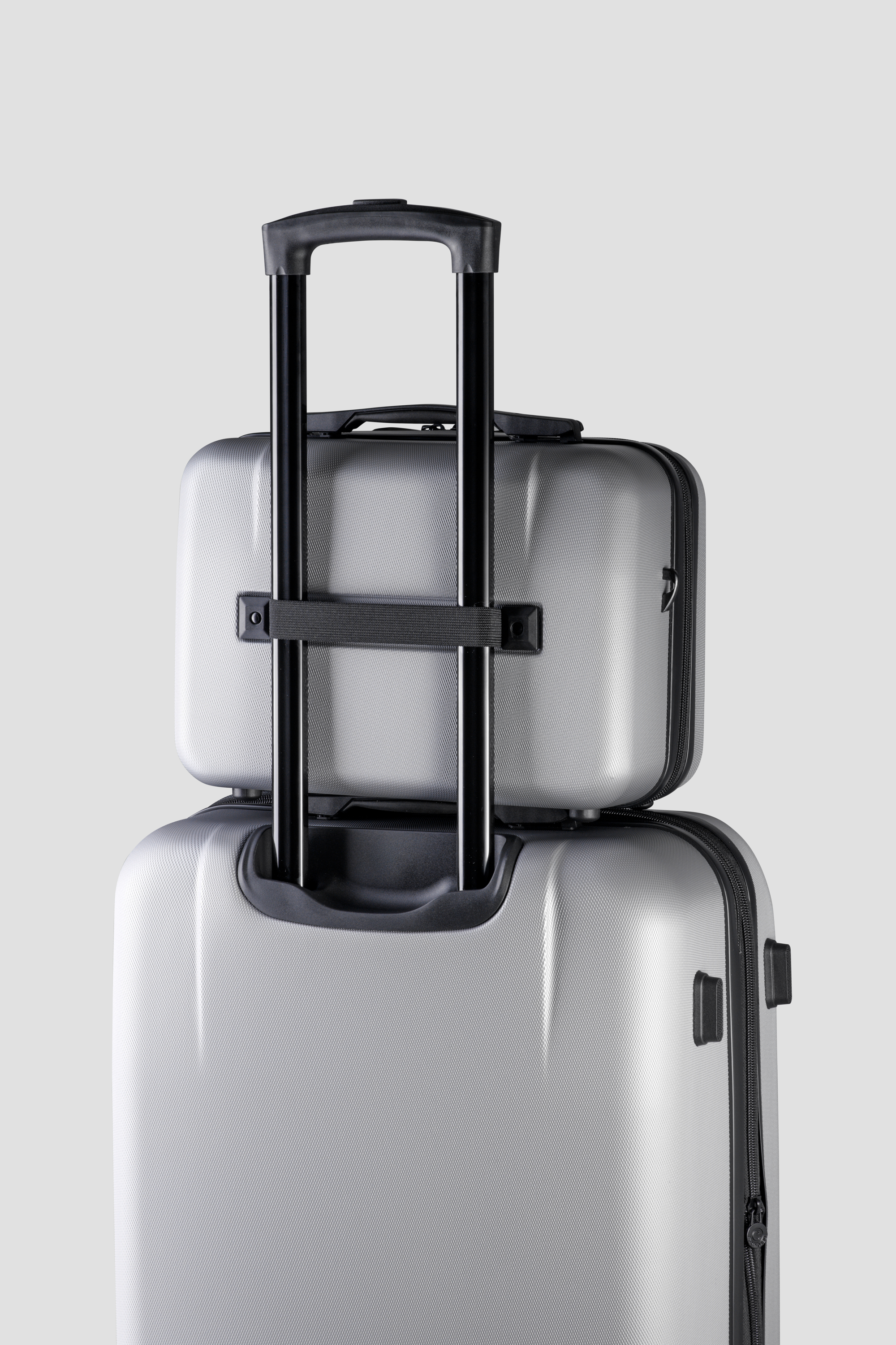 • Дополнение к багажу: благодаря специальному заднему ремню кейс надежно фиксируется на ручке основного чемодана.