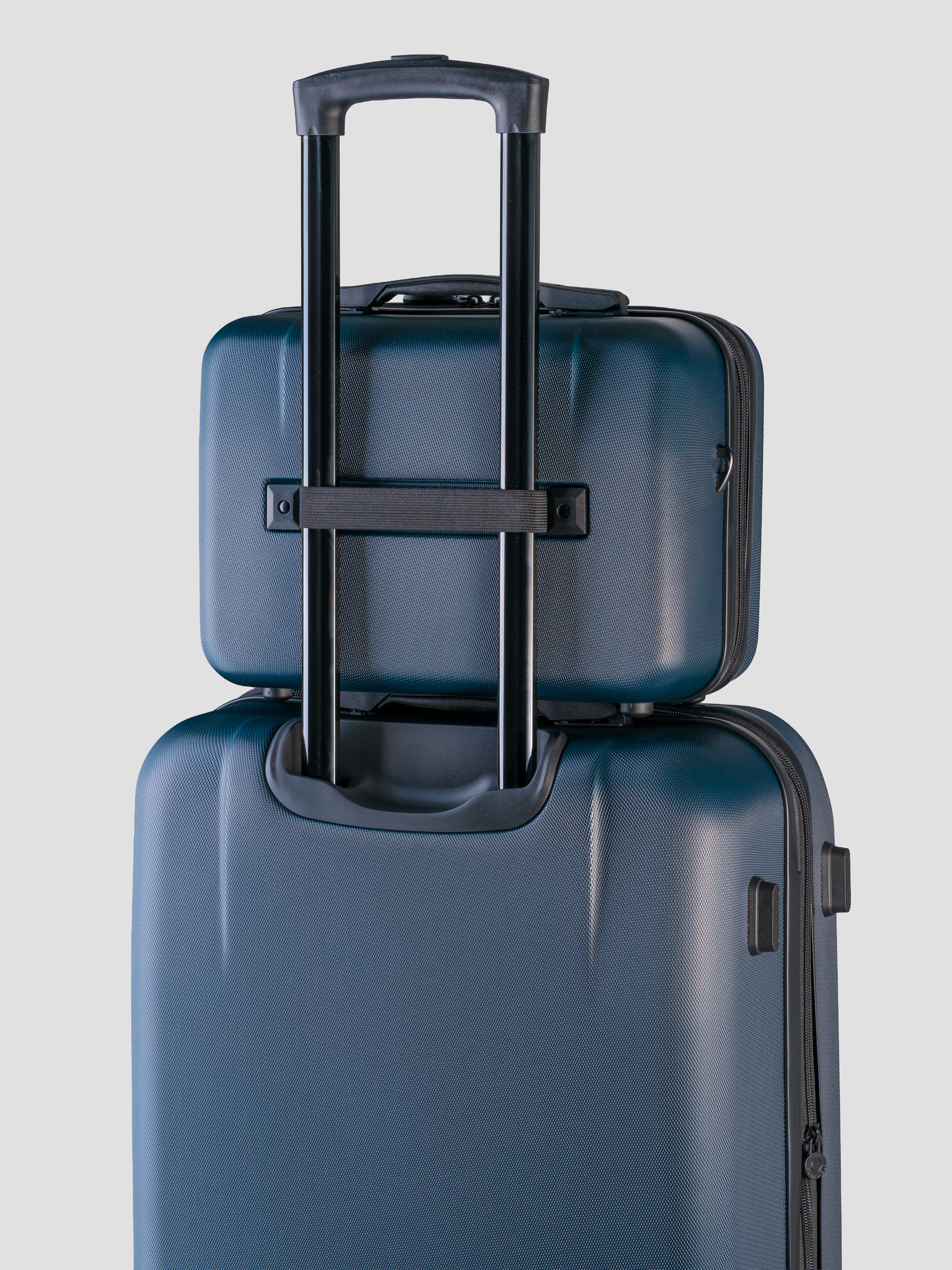 Дополнение к багажу: благодаря специальному заднему ремню кейс надежно фиксируется на ручке основного чемодана.
