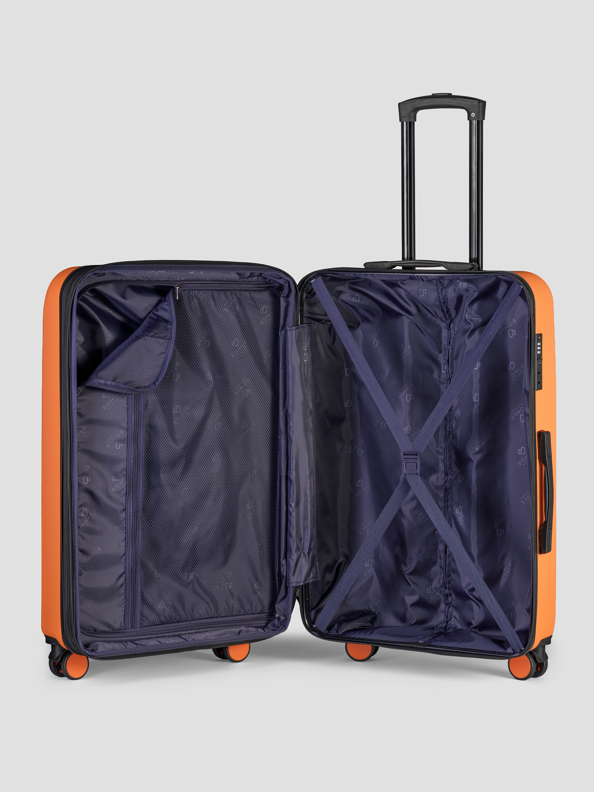 • Вместительный чемодан рассчитан на перевозку 25-30 кг вещей, а сумма измерений его сторон составляет 152 см, что соответствует нормам для регистрируемого багажа большинства авиакомпаний.