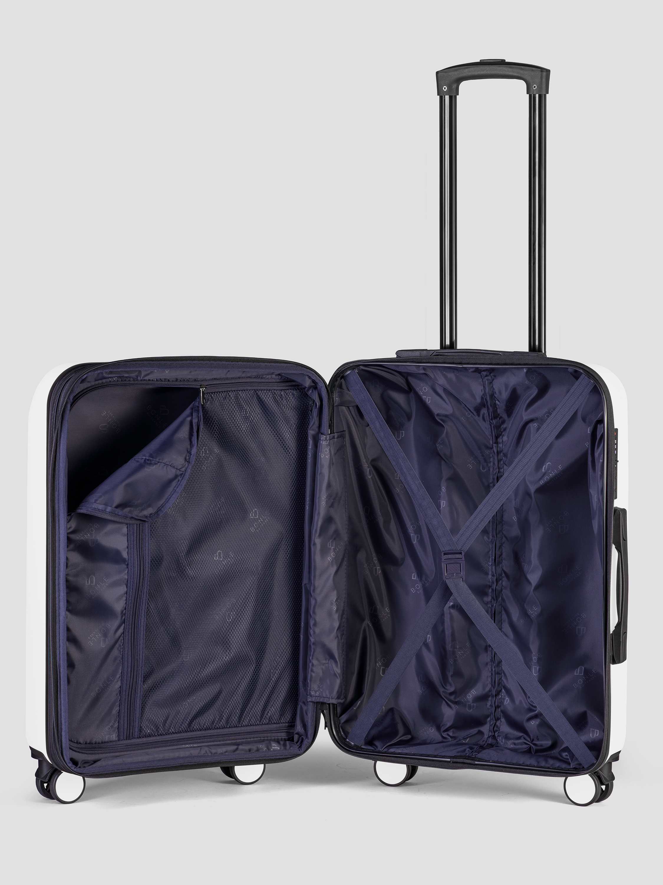 • Вместительный чемодан рассчитан на перевозку 15-18 кг вещей, а сумма измерений его сторон составляет 135 см, что соответствует нормам для регистрируемого багажа большинства авиакомпаний.