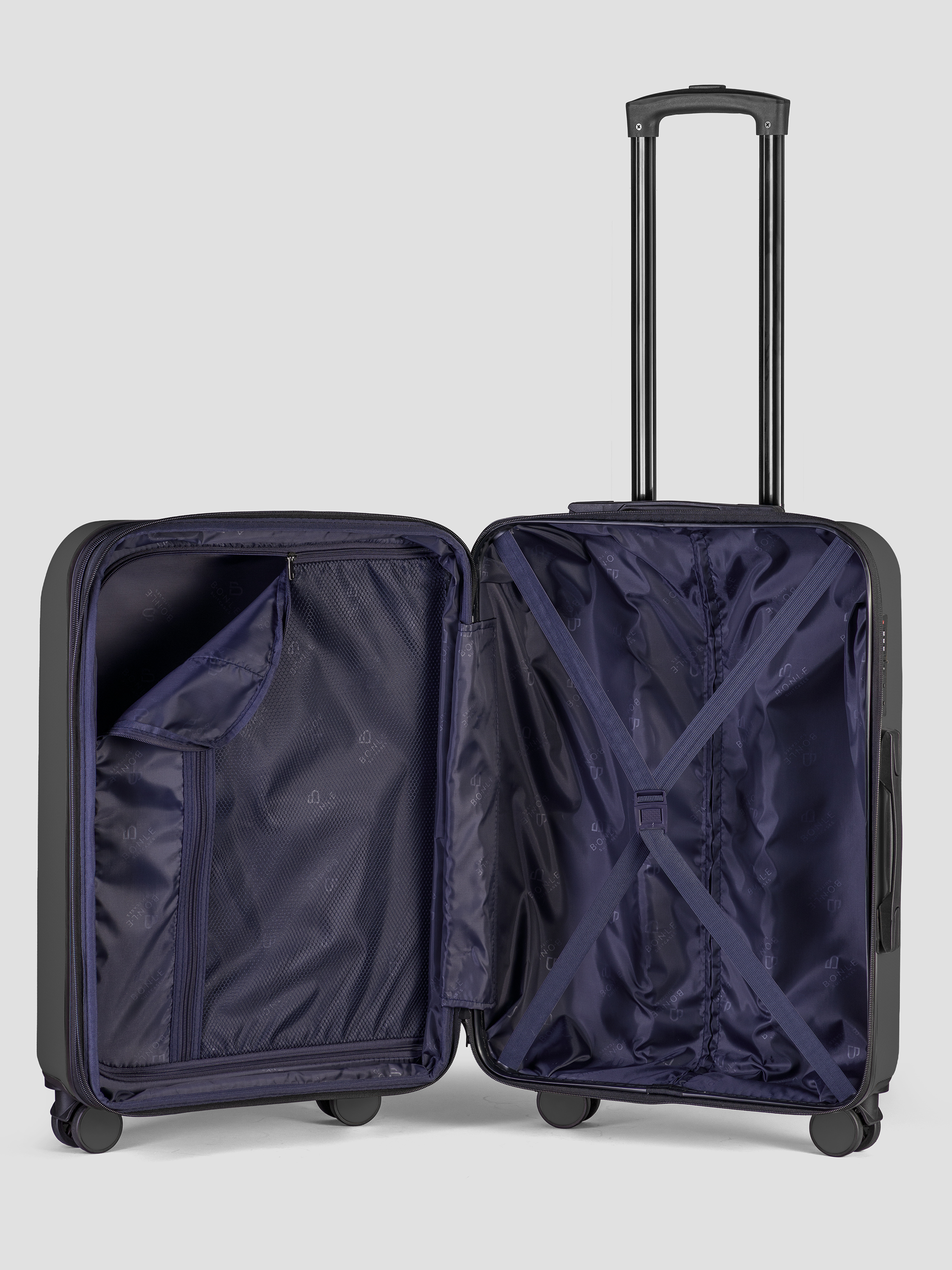 Средний чемодан Bonle размера M — золотая середина для поездок на несколько дней. Объем 72 л и продуманная организация из 3 отделений помогают аккуратно разложить одежду и обувь, а функция расширения выручает, когда вещей в путешествии стало больше, чем планировалось.