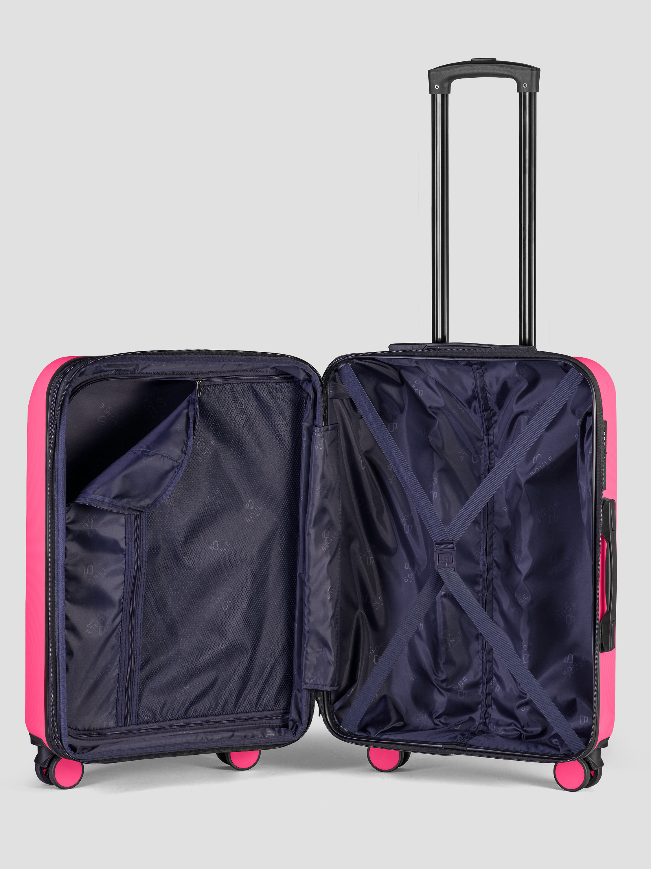 Средний чемодан Bonle размера M — золотая середина для поездок на несколько дней. Объем 72 л и продуманная организация из 3 отделений помогают аккуратно разложить одежду и обувь, а функция расширения выручает, когда вещей в путешествии стало больше, чем планировалось.