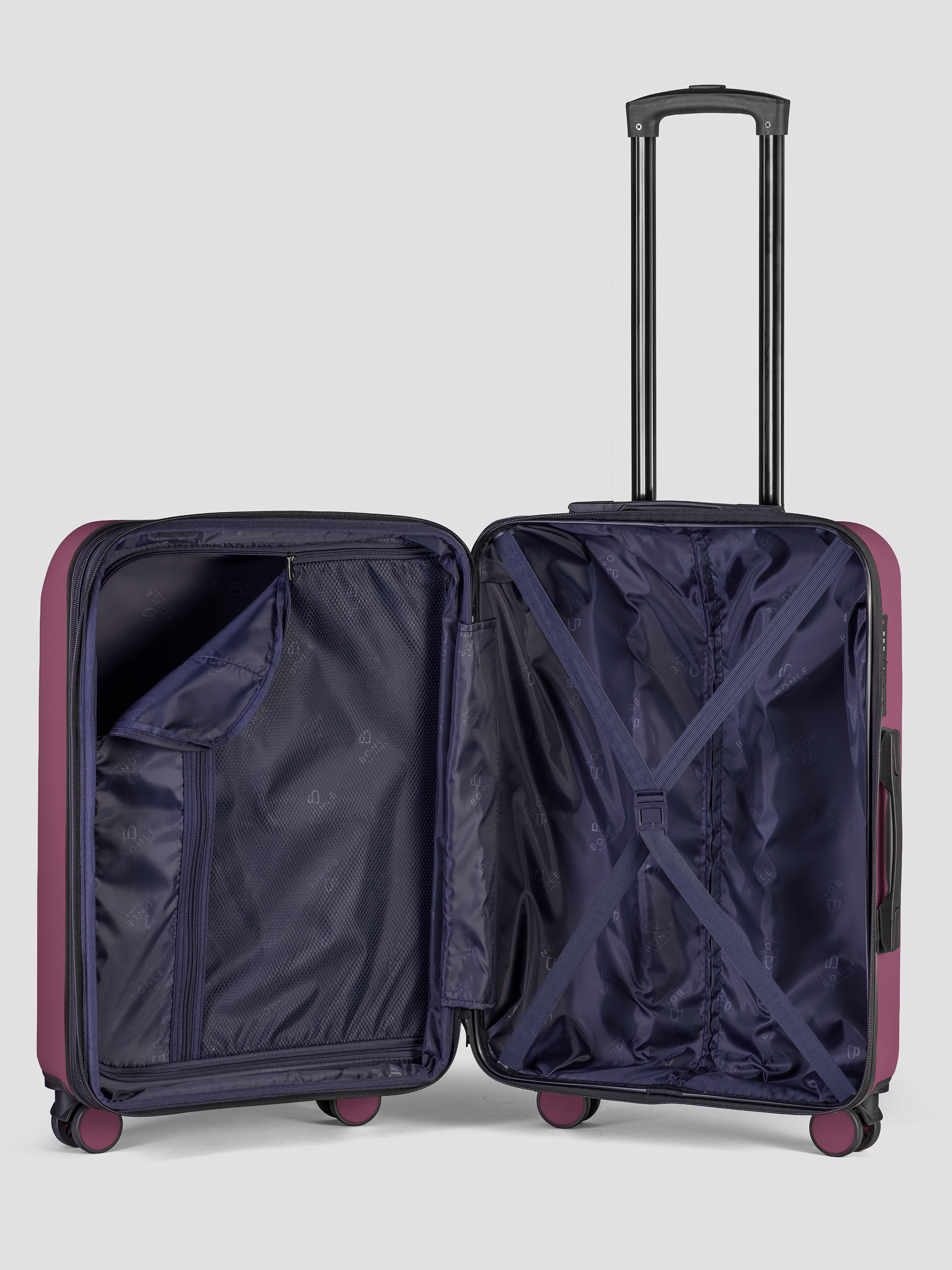 • Вместительный чемодан рассчитан на перевозку 15-18 кг вещей, а сумма измерений его сторон составляет 135 см, что соответствует нормам для регистрируемого багажа большинства авиакомпаний.