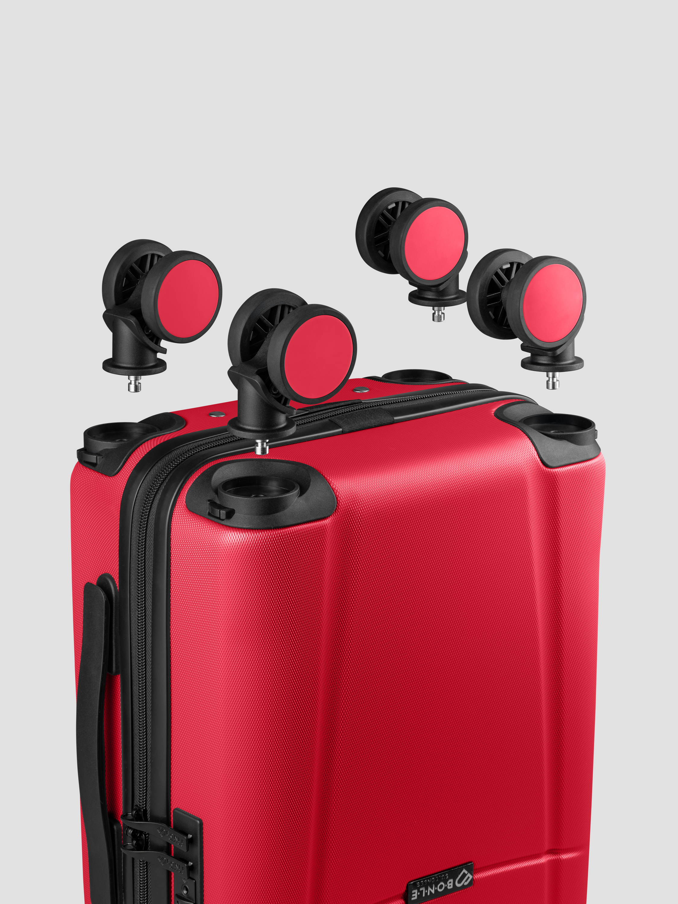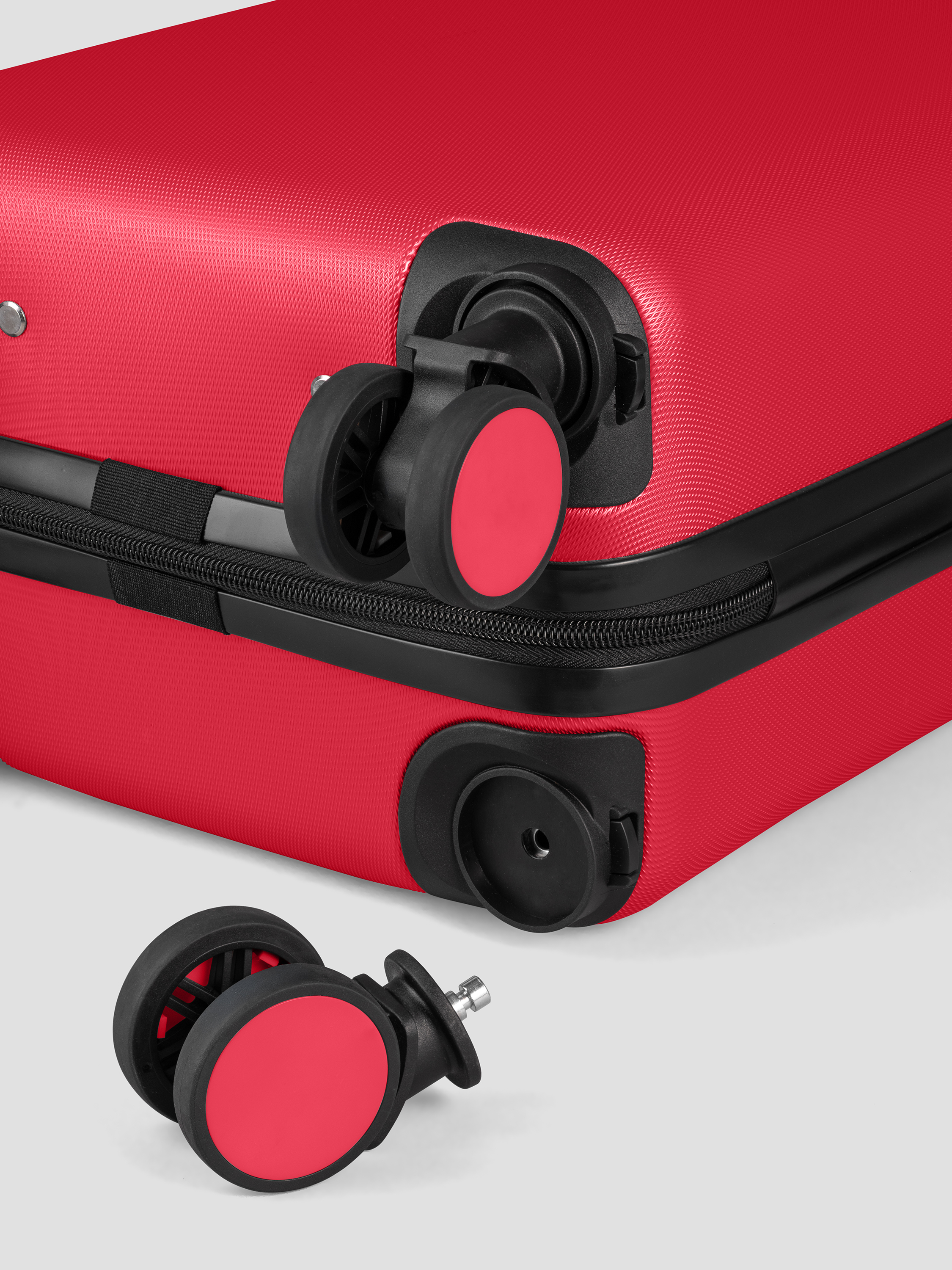• Прорезиненные съемные колеса вращаются на 360°, обеспечивая высокую маневренность. Чемодан легко катится по любой поверхности.