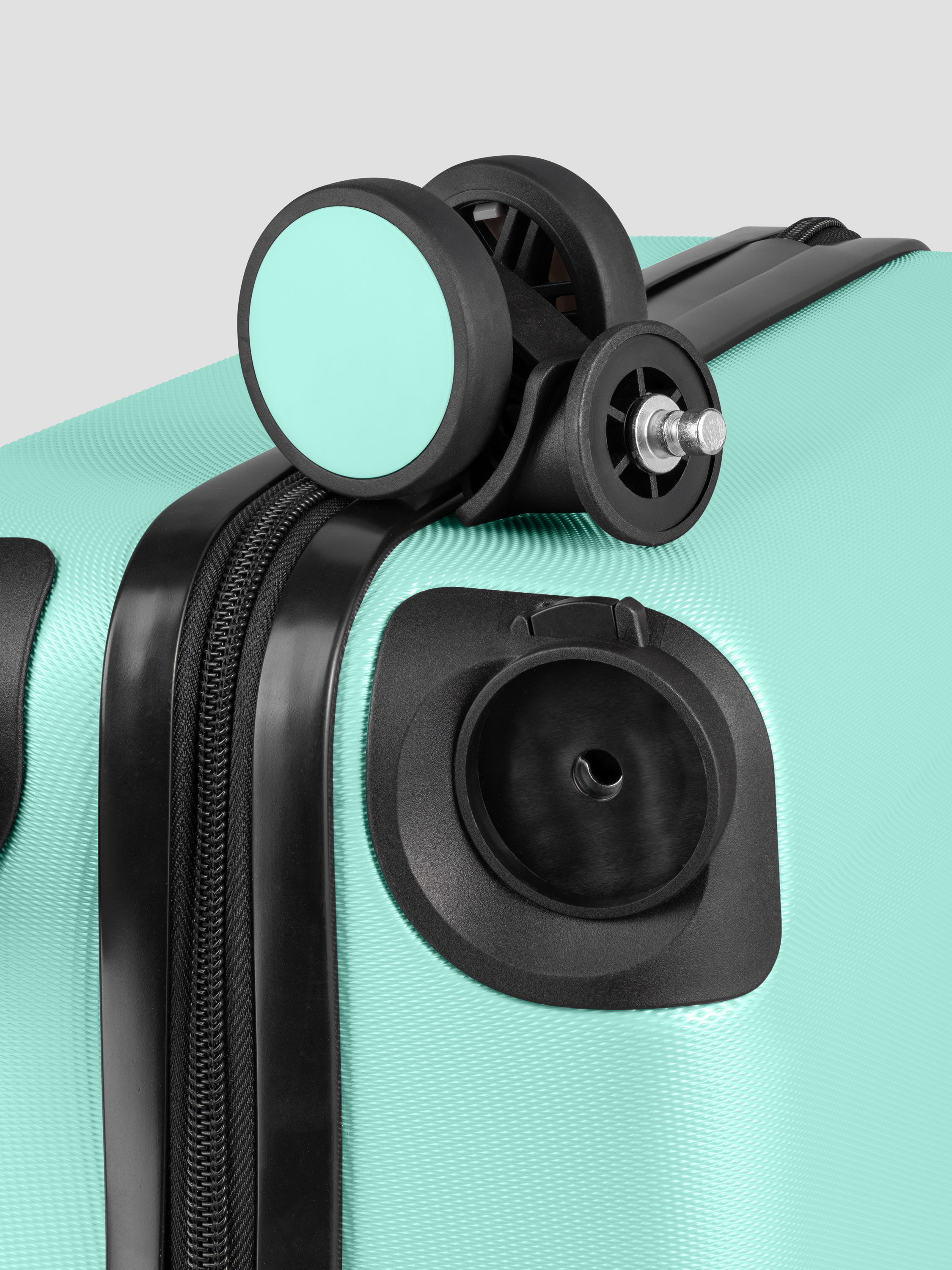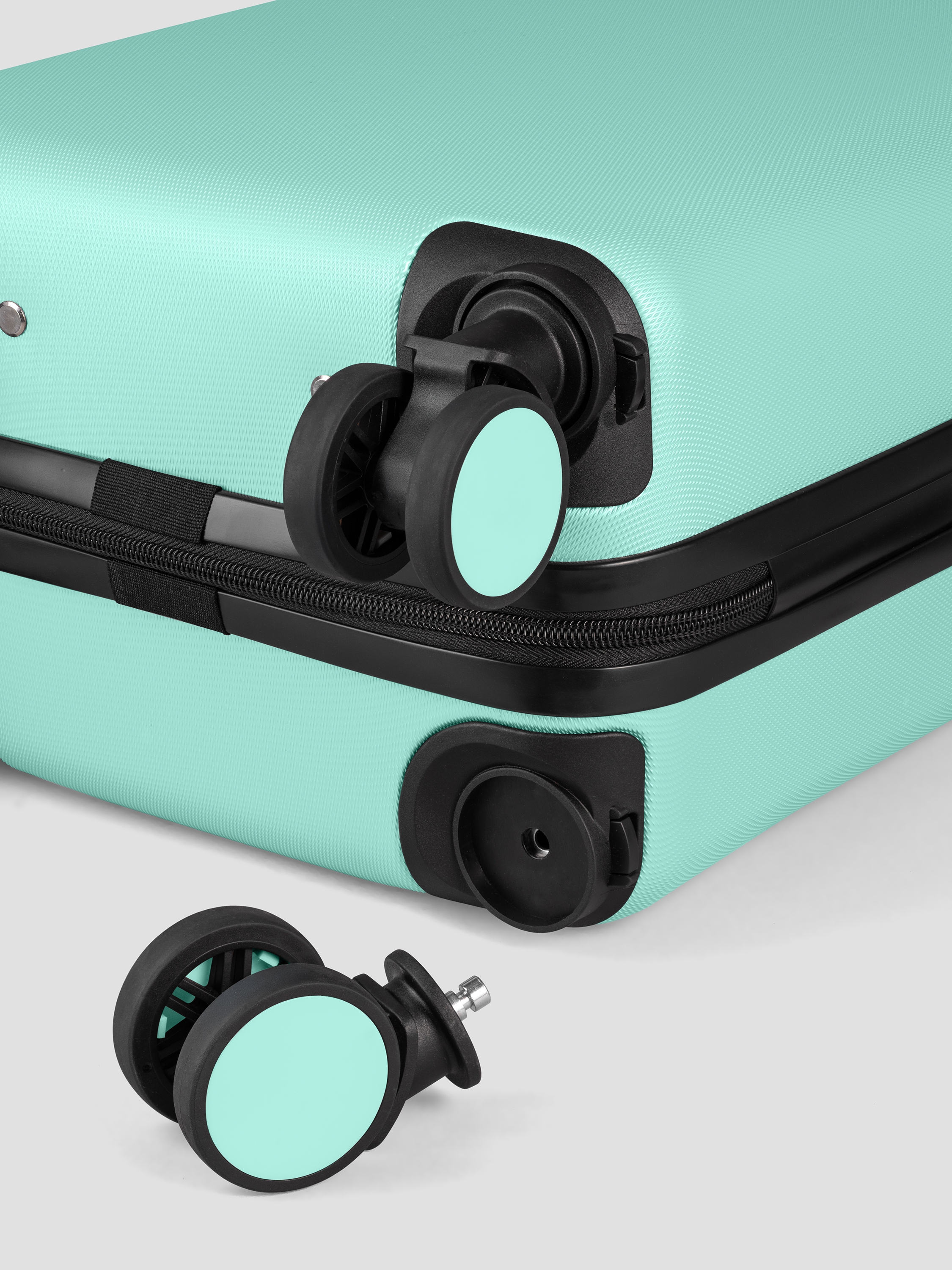 • Прорезиненные съемные колеса вращаются на 360°, обеспечивая высокую маневренность. Чемодан легко катится по любой поверхности.